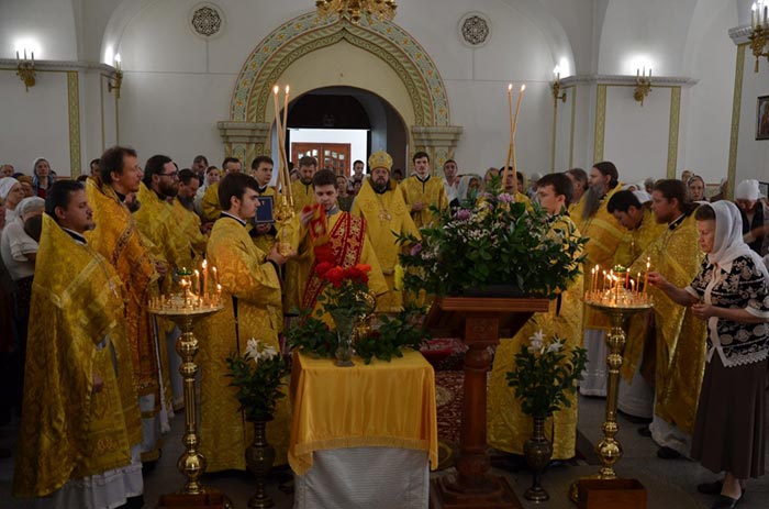 Праздничные мероприятия начались Божественной Литургией, которую возглавил управляющий делами Православной Церкви Казахстана епископ Каскеленский Геннадий.